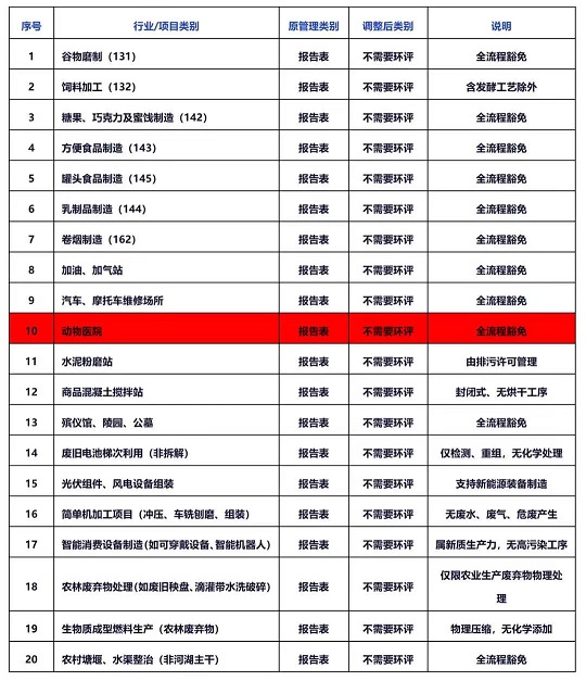 日前,生态环境部将《建设项目环境影响评价分类管理名录》公开征求意见。明确动物医院等不再需要办理环评。
