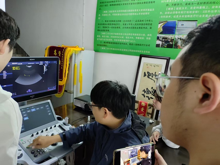 还有医疗培训,重点让学员掌握犬猫诊断思路、诊断技术(化验、X光、B超)、犬猫病处方用药、沟通技巧等临床技术。