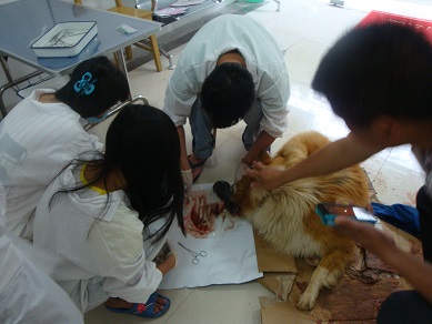 5月10日,我校动物医院接待了一只临产的苏牧孕犬。动物医院的医师通过对孕犬的检查、注射、消毒,1小时后为苏牧顺利的接下了6条幼崽。